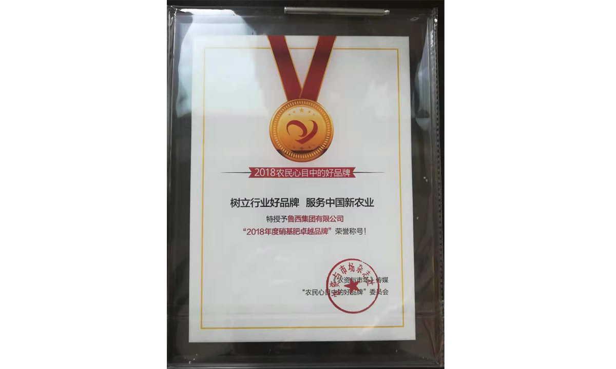 魯西集團榮獲“2018年度硝基肥卓越品牌”稱號