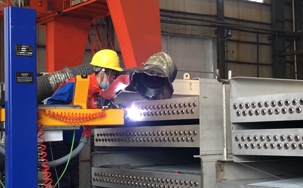 在設(shè)備制作現(xiàn)場,員工們正在熱火朝天的忙碌著。有的在彎制蒸發(fā)冷管束,有的在焊接蒸發(fā)冷箱體,有的在焊接蒸發(fā)冷管箱管頭……。記者現(xiàn)場采訪了一名焊工孟麗娟,她告訴記者:“通過實(shí)施定量定價(jià)小段包工,我原來每天焊接蒸發(fā)冷管箱230個(gè)管頭,現(xiàn)在焊接300個(gè)左右,工作效率明顯提高了,工資收入增長了,干勁更足了。”