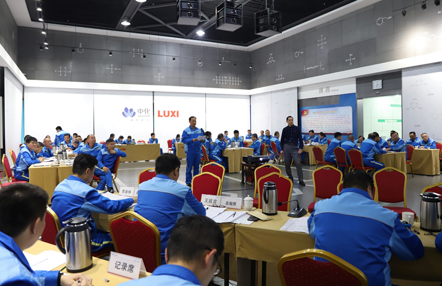這是一次生產安全事故應急預案培訓+無腳本桌面推演的應急演練活動。中國中化應急專家團隊進行演練導入培訓和全過程指導,魯西集團三個層級應急指揮部合署辦公,設置生產處置、搶險救援、技術保障、后勤保障、疏散警戒、醫療救護、環境監測、公共事務、善后處置、財務保險、事故調查等11個小組,共計100余人參加演練。