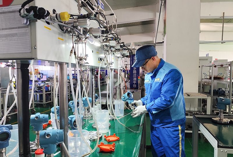注油工序?qū)ⅰ熬蚣?xì)算”發(fā)揮的淋漓盡致。硅油作為制作法蘭變送器的必需品,在注油方式未改進(jìn)前,每一臺(tái)變送器注油量的多少,只能根據(jù)人為的經(jīng)驗(yàn)去判斷,沒有確切的使用標(biāo)準(zhǔn),這就造成了制作前對(duì)硅油進(jìn)行加熱處理的用量很難把控。制作完成后剩余硅油含有雜質(zhì),不能二次使用,長此以往,造成廢舊硅油的堆積。為解決這一瓶頸,注油臺(tái)增加抽濾瓶裝置,對(duì)剩余硅油利用抽真空方式進(jìn)行雜質(zhì)過濾,廢舊硅油得到了最大限度的利用。同時(shí)改進(jìn)注油方式,根據(jù)毛細(xì)管的長度以及硅油密度計(jì)算出準(zhǔn)確的注油量。3米、5米、8米……各類型毛細(xì)管法蘭變送器的注油量得到了精準(zhǔn)把控,經(jīng)過改進(jìn)后,原來每月20公斤硅油的使用量,降低到現(xiàn)在的10公斤,并且利用率至少提高了50%。
