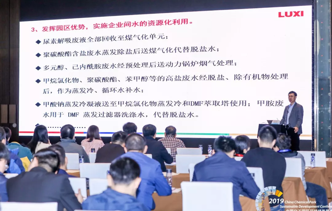大會公布了6家“2019年綠色化工園區(qū)”和6家 “2019年綠色化工園區(qū)(創(chuàng)建單位)”名單。聊城化工產(chǎn)業(yè)園榮獲“綠色化工園區(qū)”稱號,是內(nèi)陸化工園區(qū)中唯一獲得此項殊榮的園區(qū)。集團副總經(jīng)理楊本華作為嘉賓出席會議并在會上做了“化工園區(qū)廢水零排放實踐”的主旨發(fā)言。