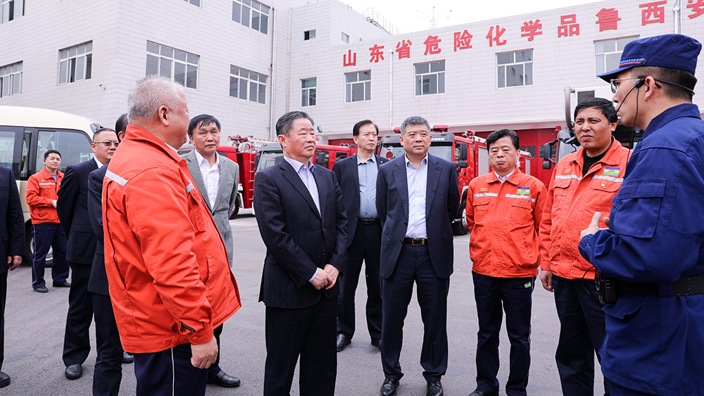 在應急救援中心,寧總觀看了應急救援隊員們的體能操練,詳細了解魯西集團應急救援的設施配備、培訓和外部救援情況,當聽到今年一季度對外接警處置18次、園區內接警0次時,他連聲夸贊應急隊員們訓練得好、培訓得好、為維護當地社會一方平安作出貢獻。