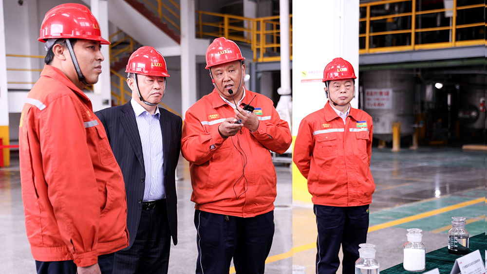 3月31日下午,寧總一行來到魯西集團化工產業園區,調研應急救援中心、MTO/乙烯下游一體化裝置、雙氧水項目、多元醇裝置、廢水零排放裝置、固危廢綜合處理裝置、催化劑事業部、高端氟材料項目、技術中心實訓科研基地、智慧化工園區運行管控平臺建設和工程設計院。寧總看現場、究細節、問數據、細對比、提建議,和相關項目負責人、隨行同事、專家深入溝通交流。