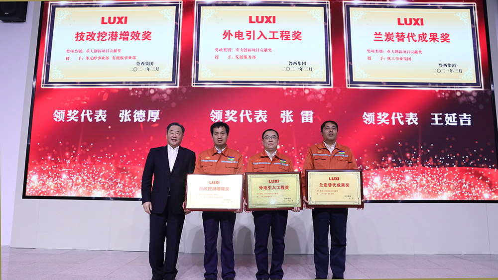 中化集團領導出席魯西集團2020年度表彰大會,分別為獲獎代表進行了頒獎,并向獲獎代表致以祝賀,全場響起陣陣熱烈的掌聲。