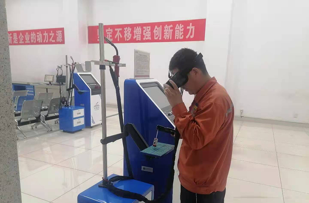 5月23日,在魯西集團實訓中心的焊接實訓區,看到兩位員工正戴著VR眼鏡,手持自動焊槍,專注的在焊接試板上進行焊接練習。在這里根本看不到實景焊接中焊花飛濺的景象。培訓負責人介紹說:“這是焊接模擬仿真實訓區,該系統是新一代環保、節能、通用型焊接操作技能實訓與考核平臺。練習過程中,不使用焊條,原料0消耗;不產生煙氣,空氣0污染。適用于焊接零基礎的員工進行培訓。能夠滿足員工焊條電弧焊、氬弧焊、CO2氣體保護焊、機器人編程教學操作基礎知識培訓及安全考核模擬。”