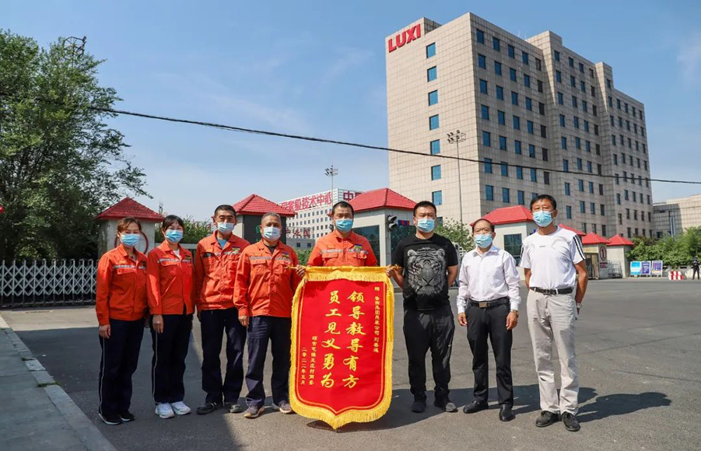“已經出院了,老人的精神狀態不錯。”王書記是被救老人所在村的村支部書記,接受記者采訪時,他剛從老人家出來,“老太太已經60多歲了,要不是劉善連,后果不堪設想,慢一分鐘都不行!” “當天被救人家屬就給我們村委打電話,讓我們幫忙找救命恩人”,王書記說,“當時有我們的村民在現場,多方詢問才知道,是我們鄰村人劉善連,在魯西上班。”5月23日,村兩委受被救人家屬委托,將寫著“領導教導有方 員工見義勇為”的錦旗送到了魯西集團劉善連的手中,表達了萬分感謝之情。