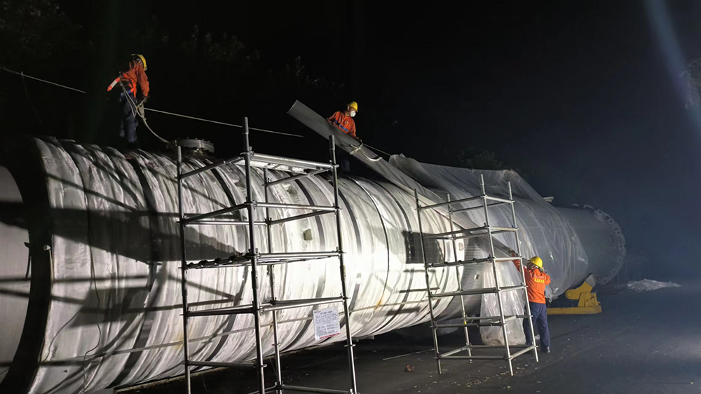 在項目現場,機器轟鳴,焊花閃爍,設備倒運、吊裝、安裝、保溫、探傷等所有工作齊頭并進。制造與工程事業集團各事業部按照統一部署,分別成立了黨員和先鋒突擊隊,各盡其能,大顯身手。層層分解,落實責任,加緊施工,整體項目推進順利,每天一小變,三天一大變,設備安裝緊張有序的開展。
