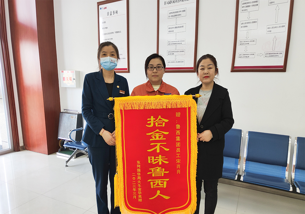 “撿到東西歸還失主是應該的,我母親是這樣教育我的,企業也教育我們要做誠實守信的員工,我也要給孩子做個好榜樣。”宋肖肖幾句樸實無華的話,讓對方更加感激,為了感謝宋肖肖拾金不昧的善舉,將印有“拾金不昧魯西人”的錦旗送到了宋肖肖的手中,表達感謝之意。
